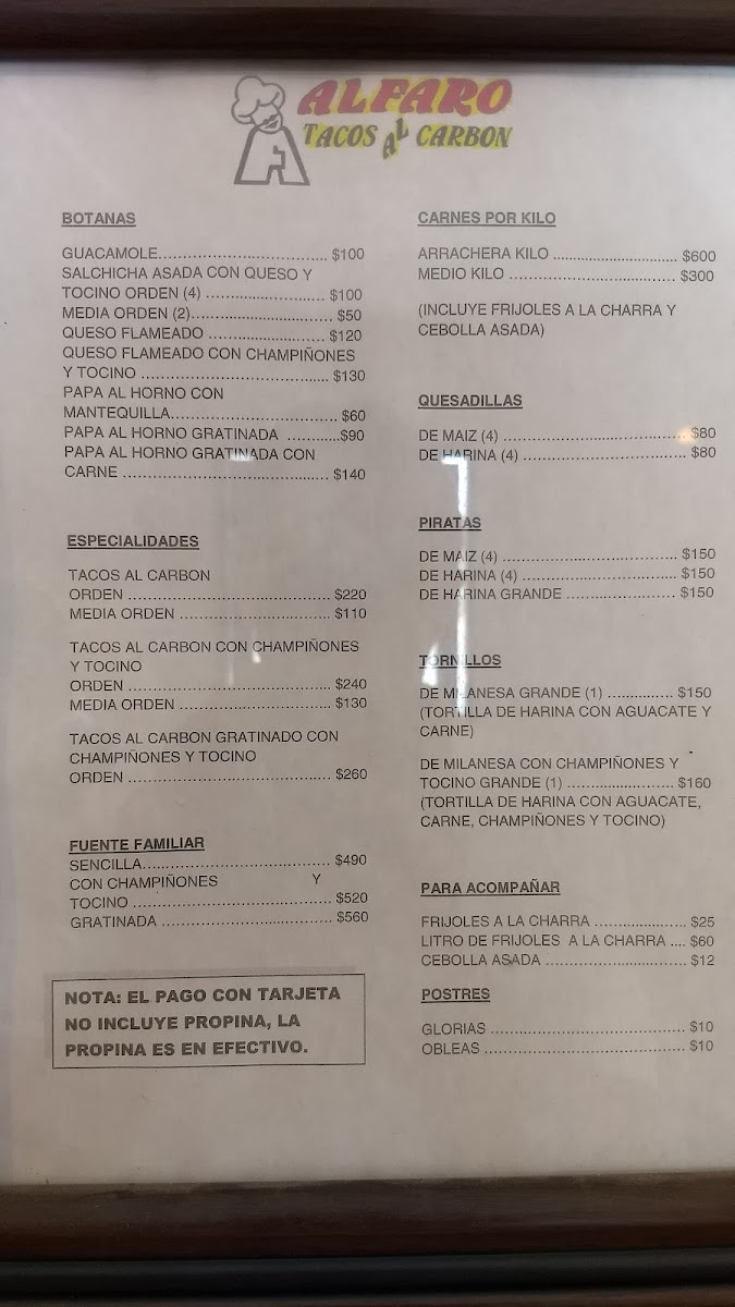 Welcome to Alfaro Tacos al Carbón, a culinary gem nestled in the heart of San Pedro Garza García, Mexico. This vibrant eatery celebrates traditional Mexican flavors, specializing in mouthwatering tacos that promise to delight your palate. Patrons rave about the juicy meats and delectable toppings, including melted cheese and fresh avocado.